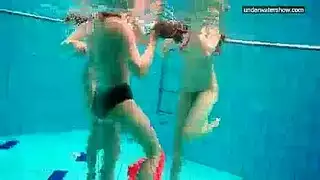 ثلاثة الهرات يلهون في بركة عارية